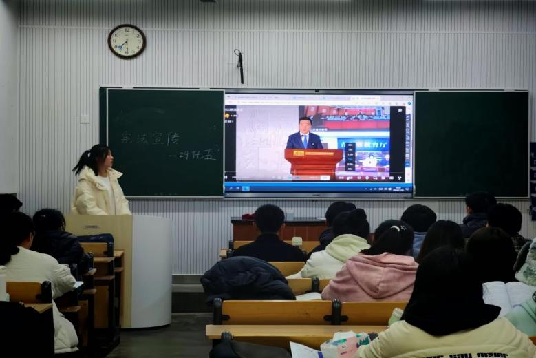 2024级本科生进行宪法宣传教育。视频中强调了推动宪法学习,弘扬宪法精神的重要性。同学们在本次活动中认真观看,并在观看后齐声朗读“宪法晨读内容”,营造了良好的宪法学习氛围。