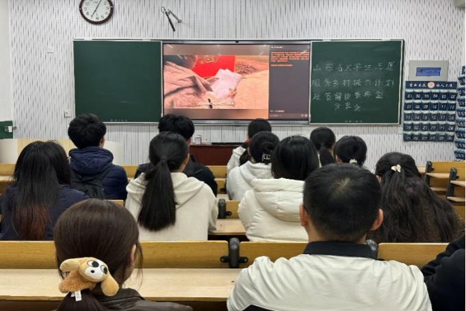于化学楼105教室成功举办了山东省大学生志愿服务乡村振兴计划政策解读暨典型分享会,学院2024-2025学年青马工程育英班全体同学参加。