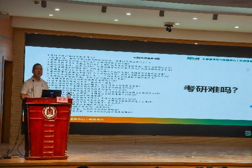 讲座开始,2023级辅导员黄秉帅、孙兰馨致欢迎辞,对郭涛老师的到来表示热烈欢迎。接着,郭涛老师解读了当下考研形势与政策并分享了科学的选校方法;最后,郭涛老师严肃提醒同学们要以踏实的态度和真实的能力迎接考研挑战。