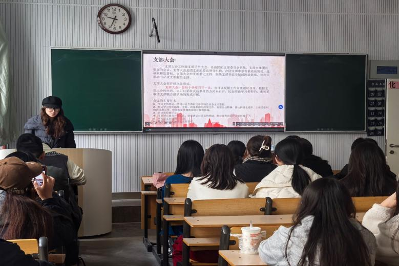 图为学院组织部部长庞亚楠进行培训