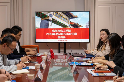 于3月30日下午16:00在化学楼209会议室举办2023年书记院长访企拓岗座谈会,学院院长冯媛媛,党委副书记孙金玲,2019级辅导员黄秉帅、孙兰馨出席本次会议,会议由学院2019级辅导员孙兰馨主持,本次共有6家企业参会。