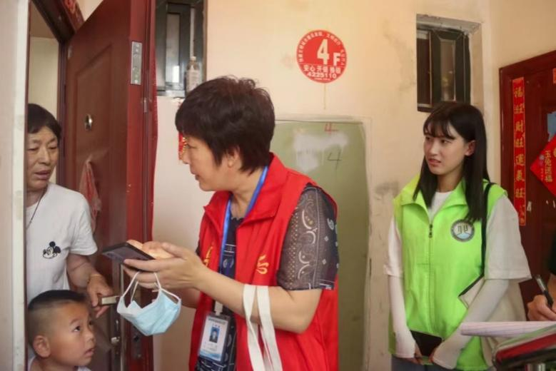 图为志愿者询问居民生活状况